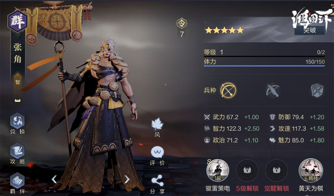 后续成型阵容有两种搭配方法,另一种是张角带博闻范策。