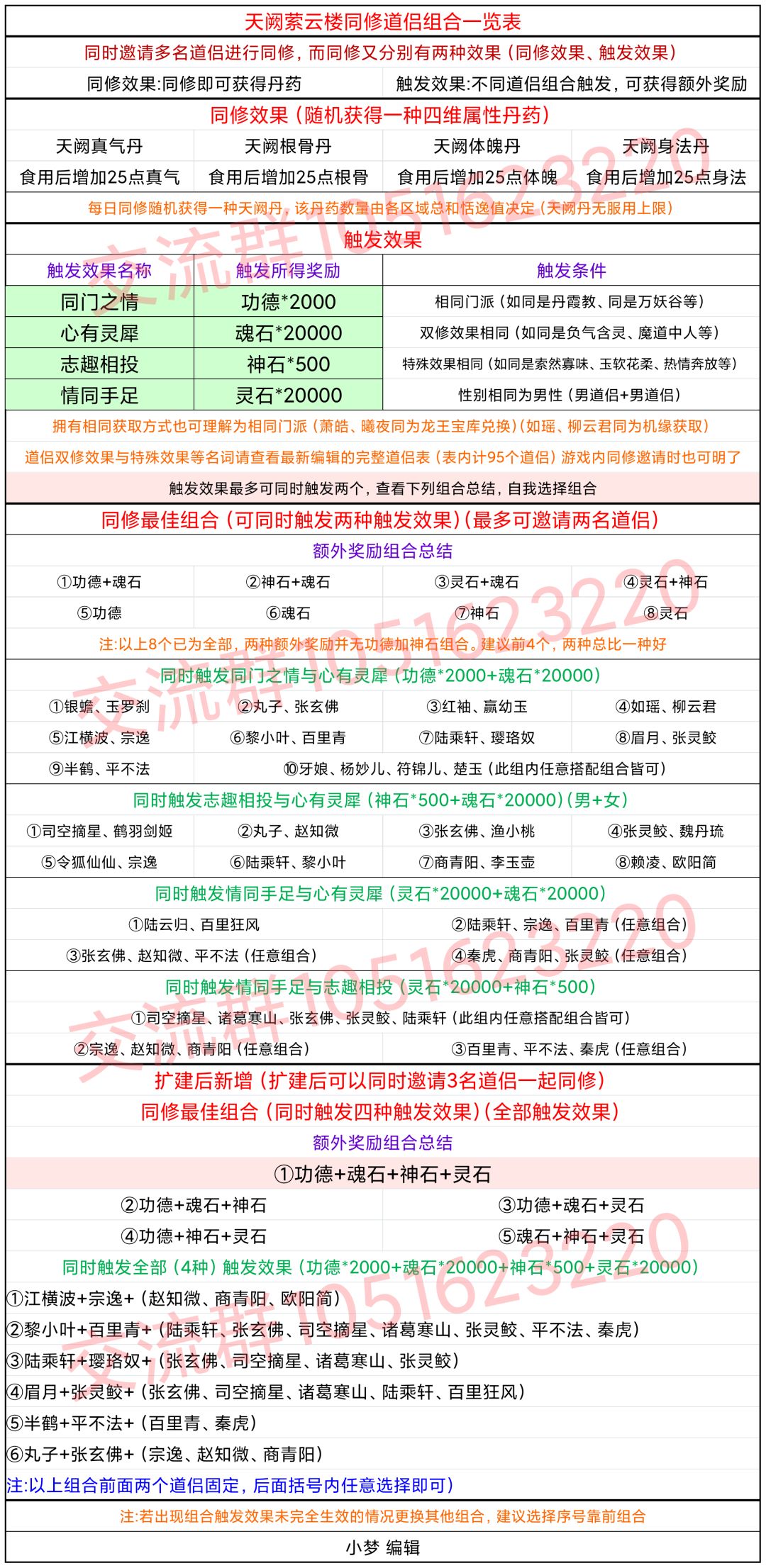 最新同修组合攻略表格