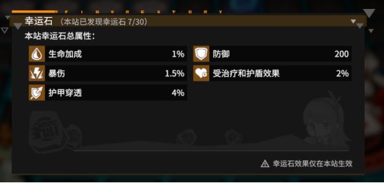 在每个站点都可探索到一定数量的幸运石,幸运石可给所有圈子成员带来属性上的提升,如果发现战斗比较困难,先组织成员去搜集更多幸运石吧!