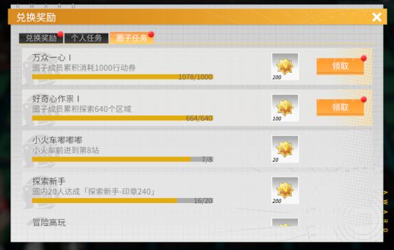 除探索和战斗行为外,收藏家也可通过完成个人任务和圈子任务来获得更多兑奖币;