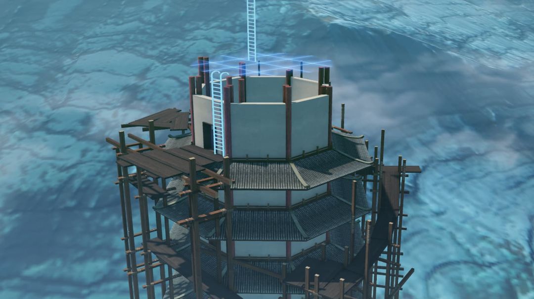 近水楼台先得月,因为附近灵气澎湃,一些小型的石块能够飘浮在空中。这里在天下楼开始建造之前是繁城最高之地。可以通过附近的龙脉施展轻功达到这里。另有一说是为了纪念一位颇有礼仪的少年服装设计师而命名。