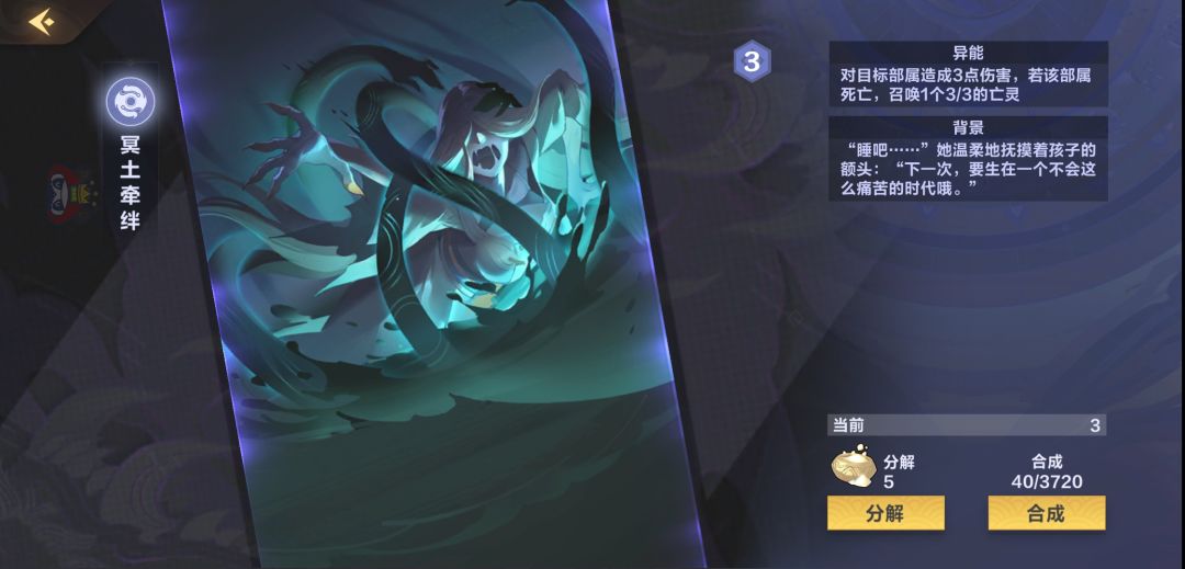 【冥狱波动】【冥土牵绊】【永劫回归】这三张卡放在一起是因为想提醒大家召唤出来的亡灵是不进墓地的,因为亡灵有异能死亡后消除自身,但是!!如果它被封印了就会进墓地,然后就会被【永劫回归】召回来,我已经不只一次【永劫回归】召出来亡灵了,我觉得自己是个憨批(T▽T),大家一定要引以为戒,游戏可以输憨批不能当!!