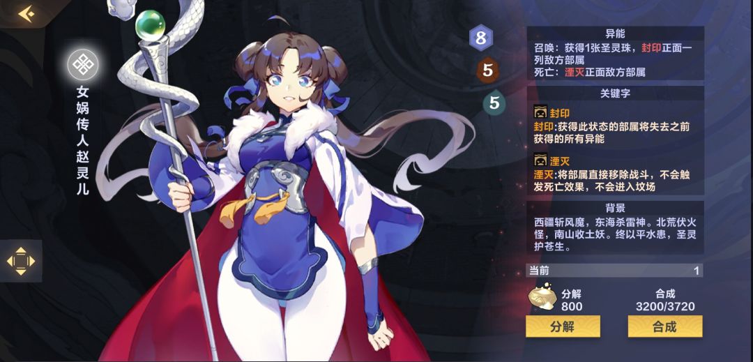 【女娲传人赵灵儿】这套卡中很重要的部署,提供圣灵珠,还有封印和湮灭,算准复活的位置能封印或者湮灭对面的重要部署