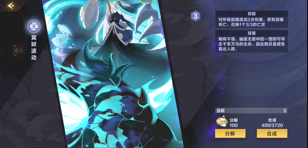 这是一套强度不低的娱乐卡组,主要通过【恶兆先知】把部署拉到墓地,再通过【永劫回归】和【元灯谜影】复活,部署中攻击最高的是【青霄女神】,可以稳定被幽莲的大招复活,【青霄女神】又可以将墓地的牌回手,来保证对局中有充足的手牌