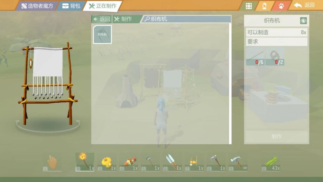 制革架与织布机的制作方法比较简单,小伙伴们只需要准备6根木杆加2条绳子即可制作。而木杆,则需要1根木棍加1个任意匕首制作。织布机与制革架在游戏后期将会扮演重要的“角色”,小伙伴们可千万不要忽视哦!