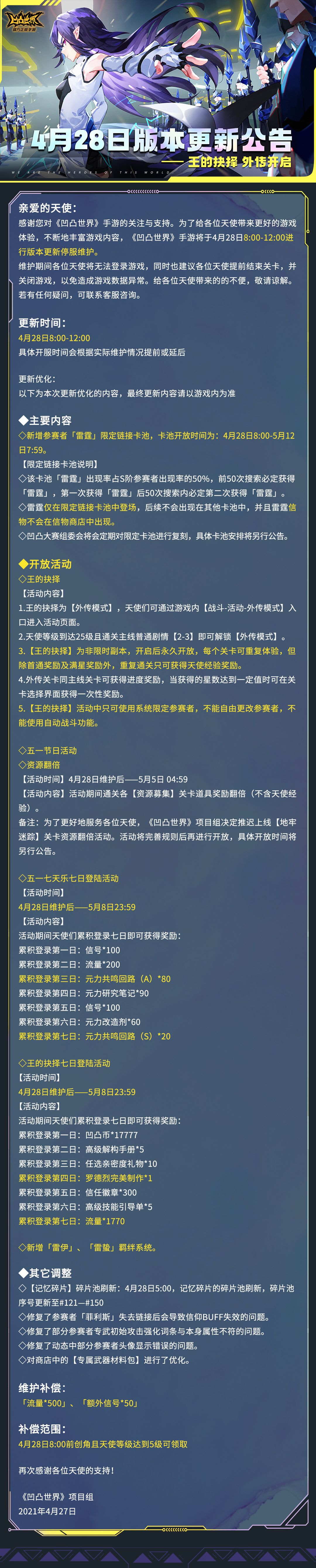 《凹凸世界》手游4月28日版本更新停服维护公告