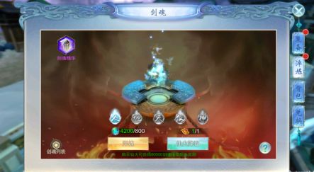 6.淬炼剑魂可以召唤仙火降临,直接获得仙火淬炼奖励,必定获得紫色以上剑魂
