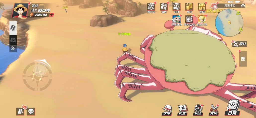 《航海王热血航线》荒漠地区探索攻略:解密隐藏任务彩蛋,迎战神秘生物功夫海牛!