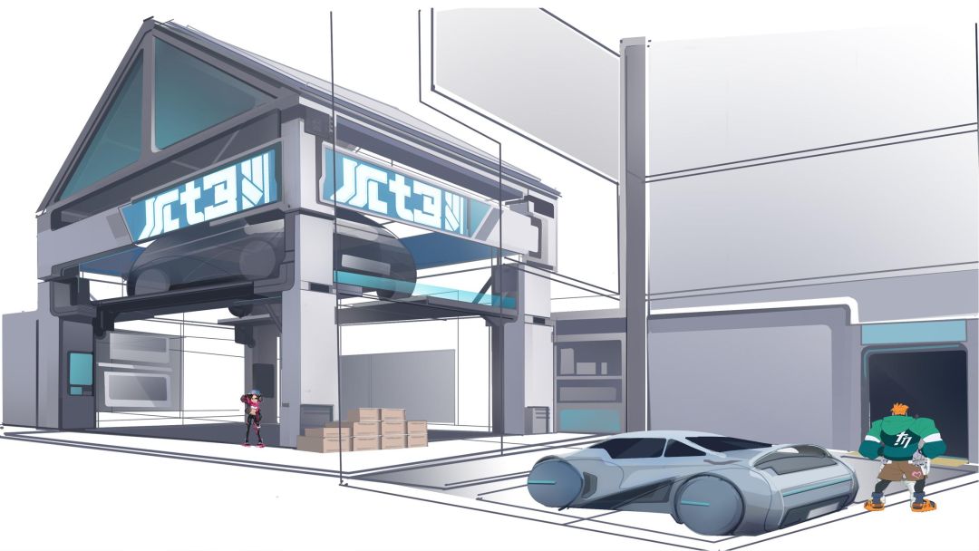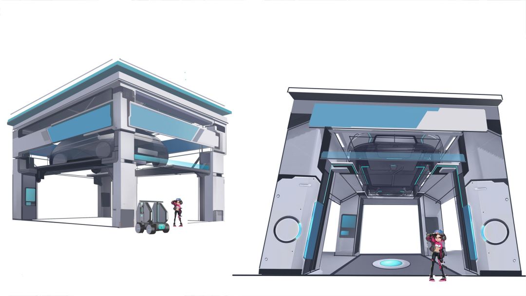 在美术风格上,新地图会比【占领据点03】更偏重工业一些。根据关卡设计的布局,场景概念组的同学设想过几种方向,最后还是决定向未来智能汽车改装的方向进行发散。