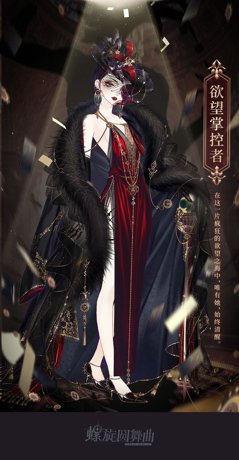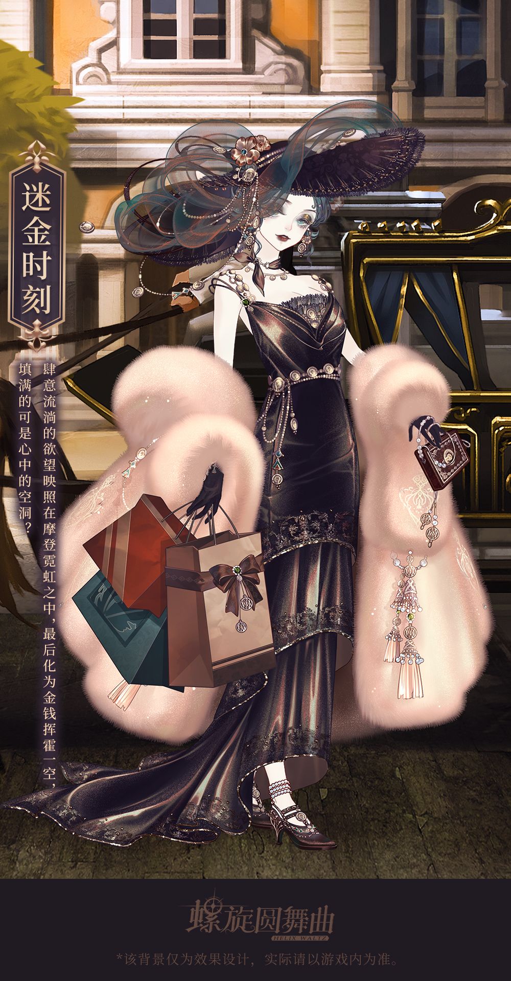 「燃情狂欢」「迷金时刻」「经年旧梦」「欲望掌控者」4套套装共44个部件;背景「老旧相片」「胜负之间」「胜负之间·动」为特殊部件,只能通过兑换获得。