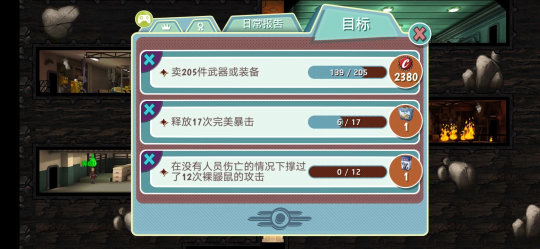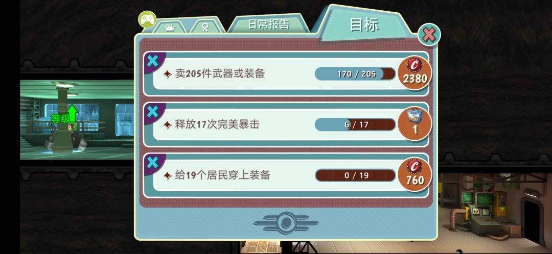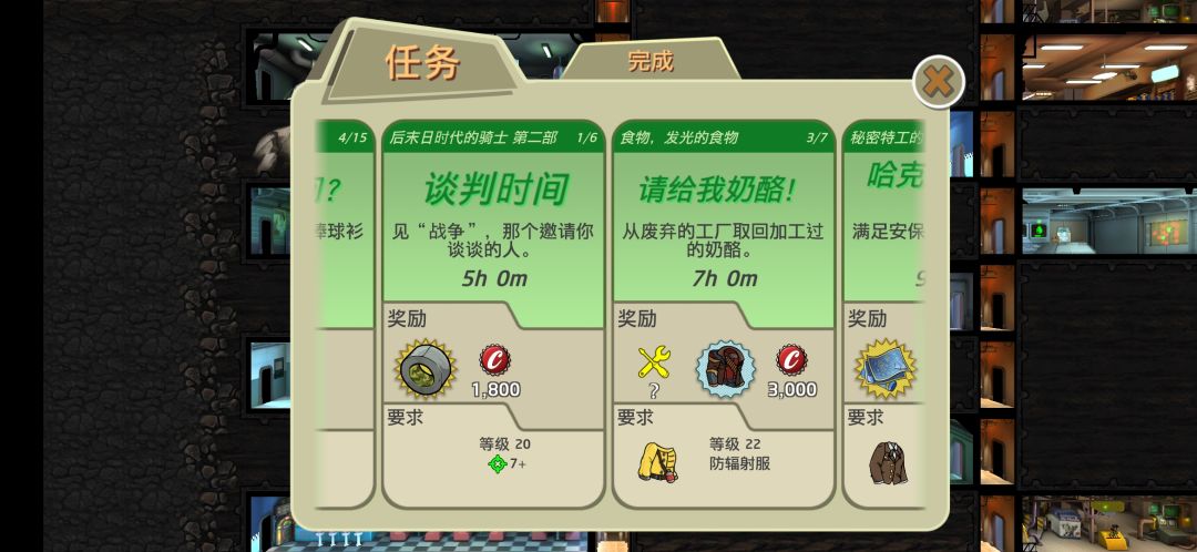 ⑥很重要的一点在于三个任务的任务难度不在于避难所人数,而在于最高等级的建筑(不包括二次升级,只是解锁条件)持续一整天
