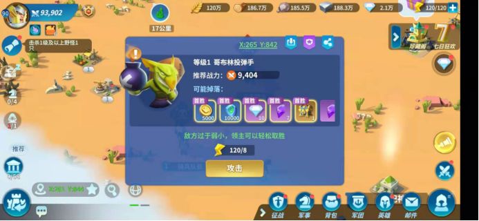 战斗类中的三种常见怪物会提供正常的升级及经济奖励,必须从最低的等级开始逐级打,每次首胜都有额外奖励,新手建议到三级就不要再探索了,进攻等级越高的怪带来的伤亡也越大,在保证收支最大的话的情况下,15级六个英雄的队伍面对3级小怪是最有收益的。