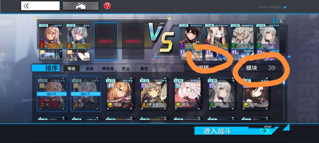 选择进攻对象后在敌方阵容下面有ai编辑和模块