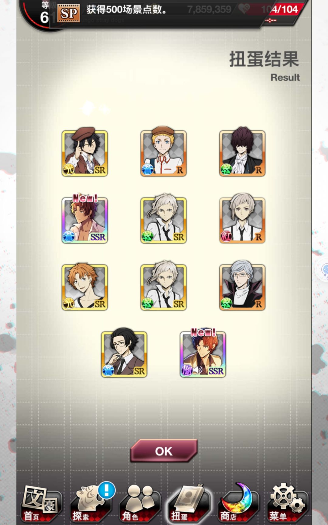好了这是我自玩这个游戏开始第二次抽到织田作