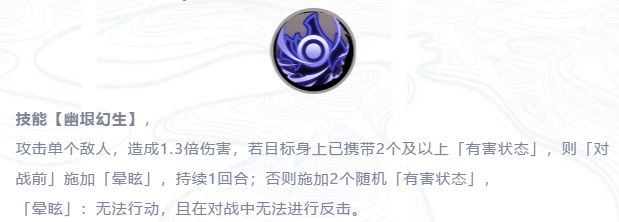 2. 先看1技能,这是白毛称霸的关键。这招用膝盖想也知道是1C,不然技能组根本没法带。官方的GIF里给到的范围有点奇怪,是面前的5*4范围。但这游戏是没有面朝哪儿这个概念的,所以突进范围问题我暂时不多作评价,等确切消息。 关键点在于二次行动,并且还能走2格。6星直接4个debuff。配上aoe就是5-6个debuff。官方的GIF里并没有debuff重复,也就是说,6星二动debuff的最低期望值就在4个以上。