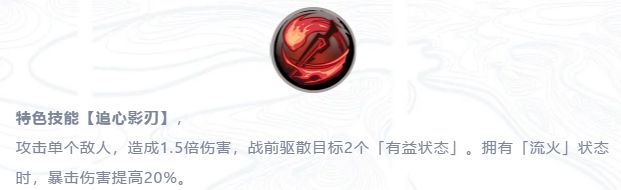 正常情况下,这个技能是这么用的:1技能标记脆皮20增伤,3技能突刺直接秒脆皮。满级天赋20攻20暴击,30增伤,御风200+会心提供20暴击。无buff情况下总共20攻击,50增伤,40暴击,1倍率aoe。