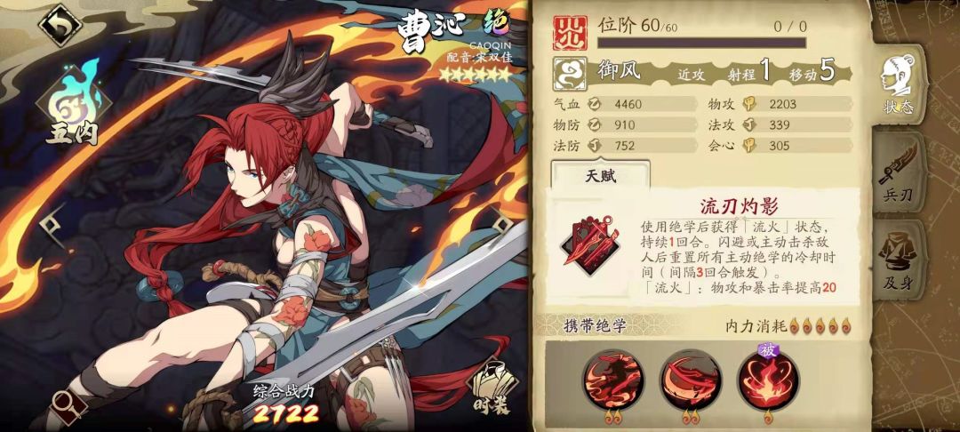 拿殷剑平作对照。退一万步说,如果基础攻击低200,2100的话。天赋直接拉到高200+。加上魂石,阵法等各种加成,总的攻击会比殷高四五百。标记的增伤和殷的天赋抵消。御风的会心至少200起步。也就是说,你面对的是一个走5+3的强化版殷剑平。就这我还没开始说aoe。