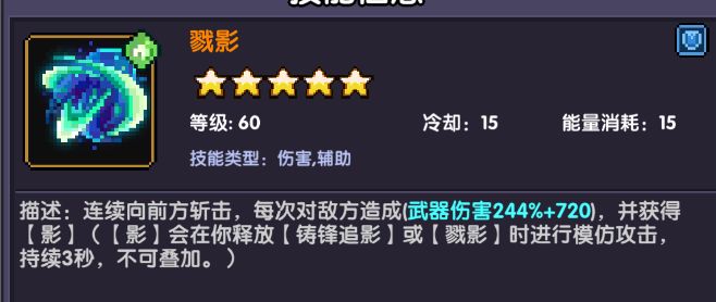 1、装备四星【正宗】时,释放技能后,再次普攻能让影模仿释放的技能