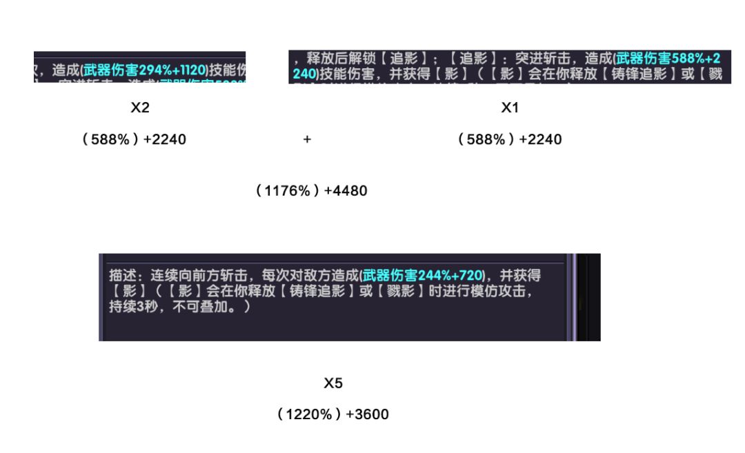 以下是普攻让影模仿技能的伤害,伤害组成为4倍影+少量普攻伤害,忽略普攻伤害总计4倍伤害