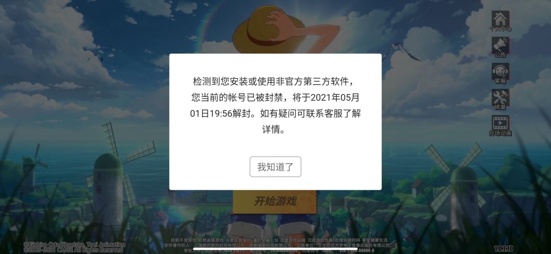 请官方尽快解决一下,游戏无缘无故被封号