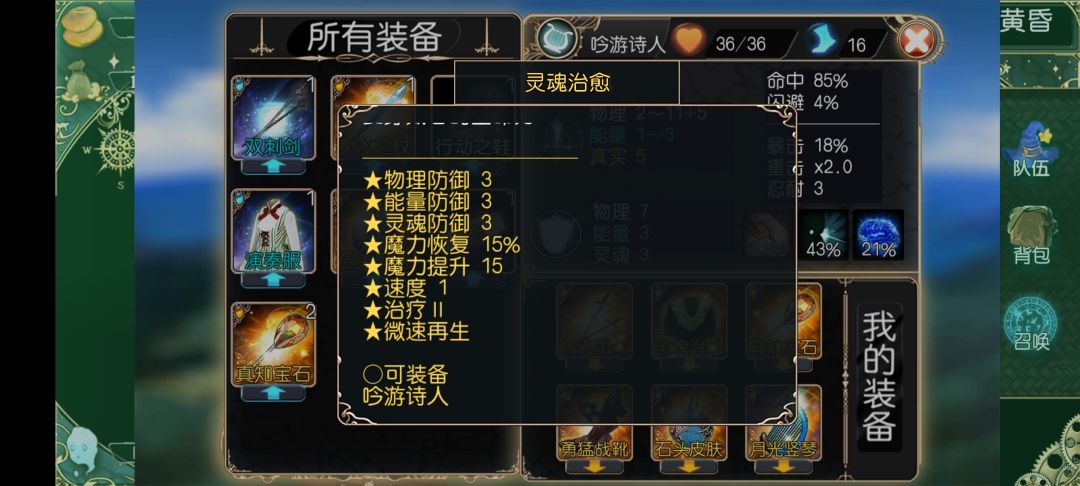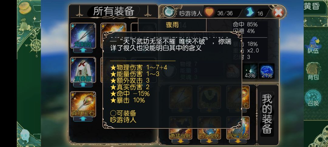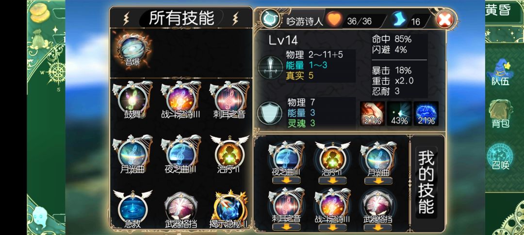 诗人:战斗诗点满,治疗和夜之曲是装备带的,下文装备会附图 别的随意。