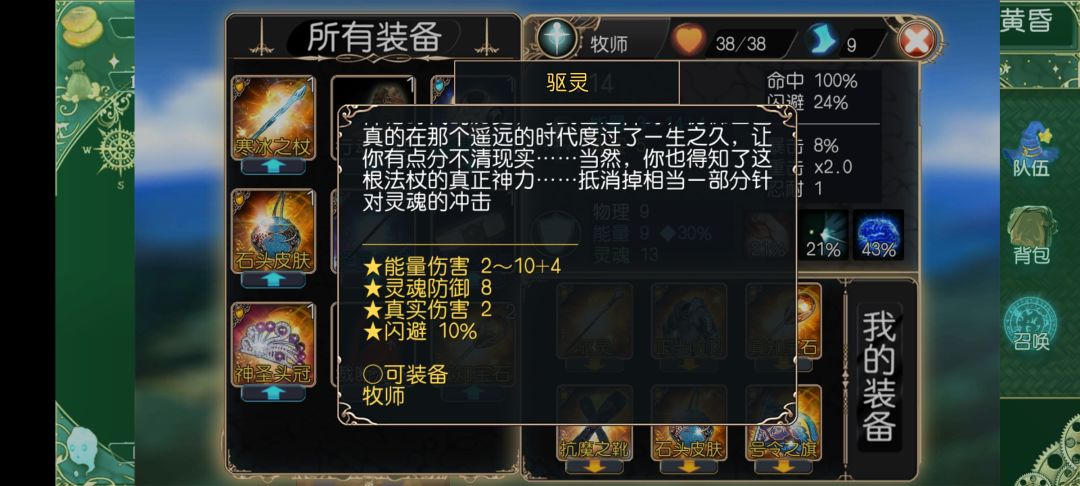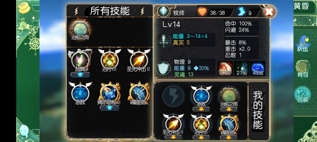 牧师:命中>每多少秒回血>全体生命加多少>速度>回蓝>其他