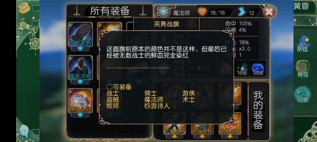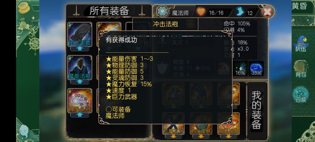 法师(混子职业)我的法师主角武器带的手套(想用低等级混奖励,所以没命中,用手套补的命中)