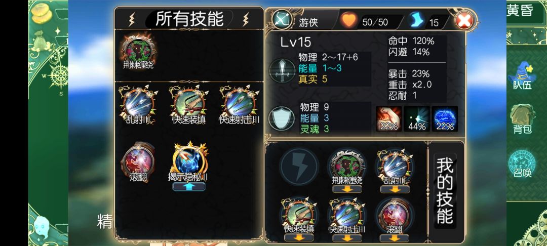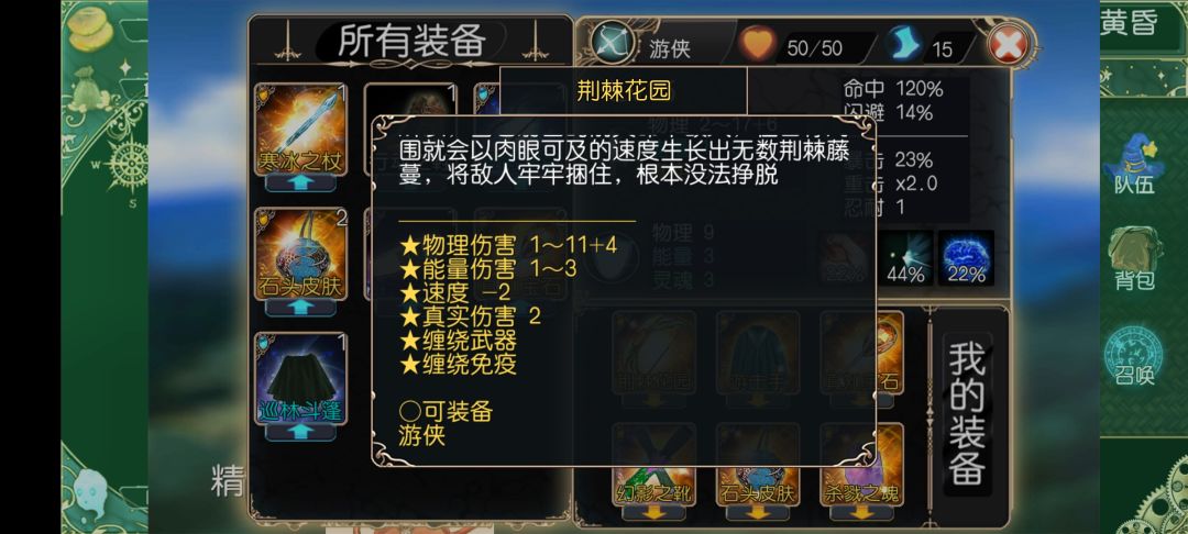 射手,因为全队输出都太猛了,所以我的射手偏辅助一点,带的控制弓。缠绕武器效果是攻击目标进行缠绕判定,触发几率很高。缠绕成功会让目标行动条定格几秒。射手的觉醒技能缠绕和这个缠绕效果相同。