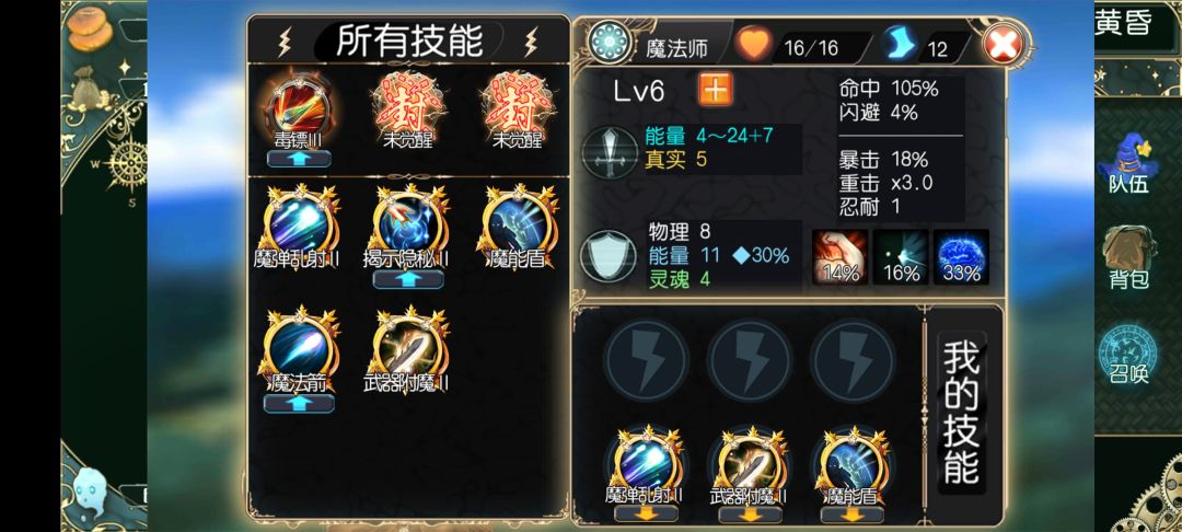 法师:点两个技能就行一是武器附魔(加能量伤害的),二是魔弹乱射(输出技能)。