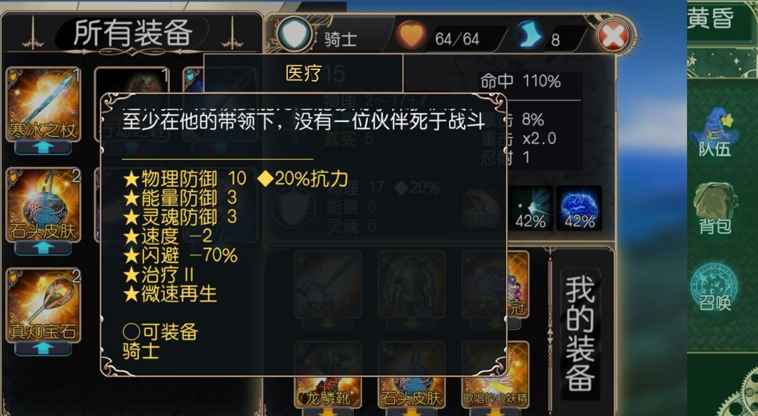 骑士:命中>阻挡>反击>物理攻击加多少>血量加多少>速度>其他