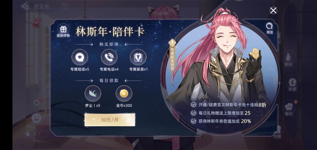 不说价钱,单说这个内容也有点少,而且还是按月来说。我玩的几个游戏都是一次性购买,最多后面再加钱加购语音包,而且也没有这么贵的吧。四个角色,一个月不算月卡就要120……