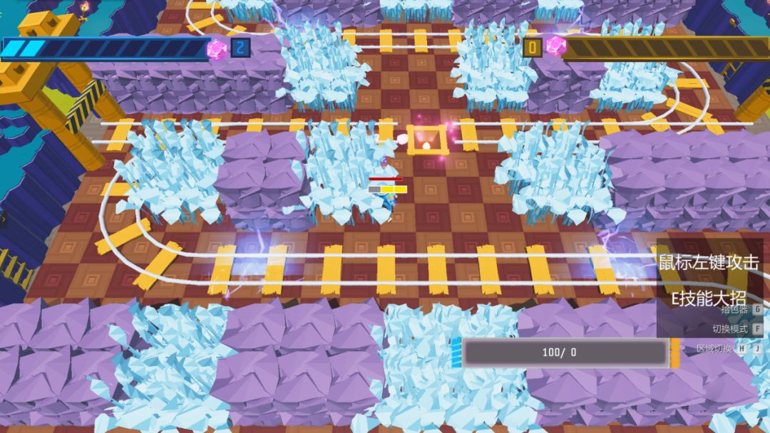 依旧是使用键盘上的W、A、S、D键位操控人物行走,鼠标左键可以进行攻击。地图中央每过一段时间就会刷出宝石,哪一支队伍最先拾取到10颗宝石,就算夺得了胜利。
