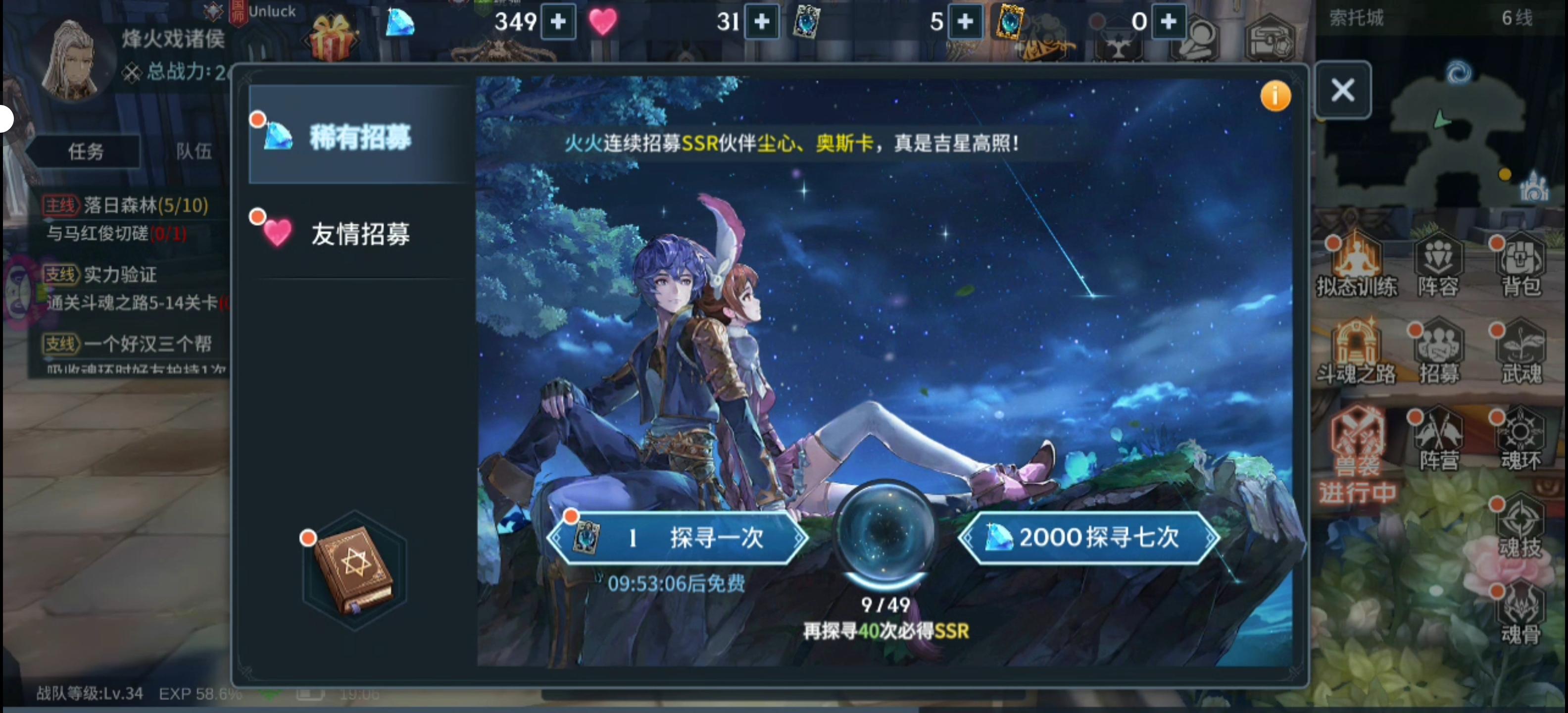 虽然是0氪,这也太夸张了吧,别人抽都是2个3个SSR的,我一共抽了58次(8次7连,每天登录都有一次免费抽,2天2次免费抽)。58次抽奖,拿了3个SSR,其中49必出也在内。这个还尼玛怎么玩?10%概率就是58出3个?