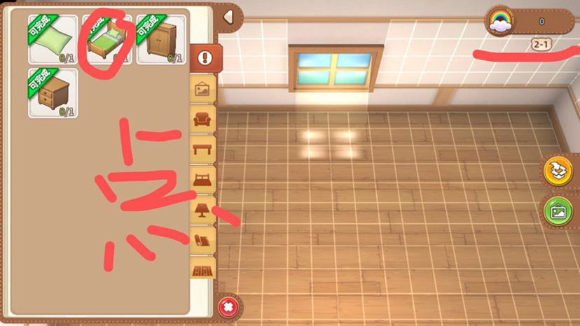 第二间2-2:植物系列1星需要四个家具,收入1000