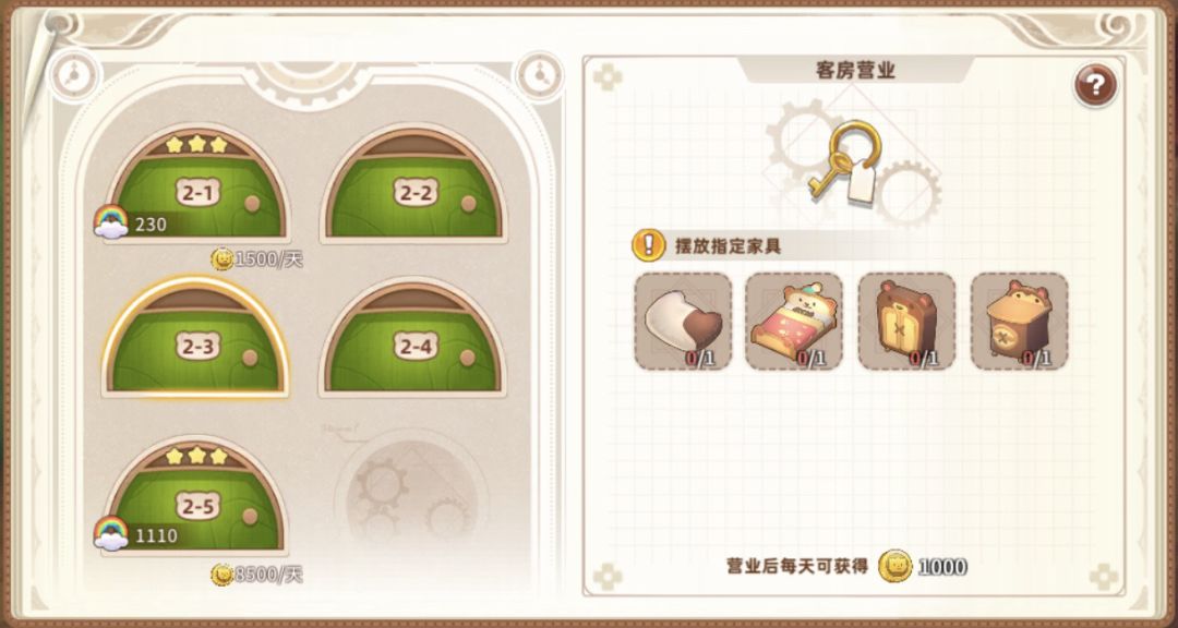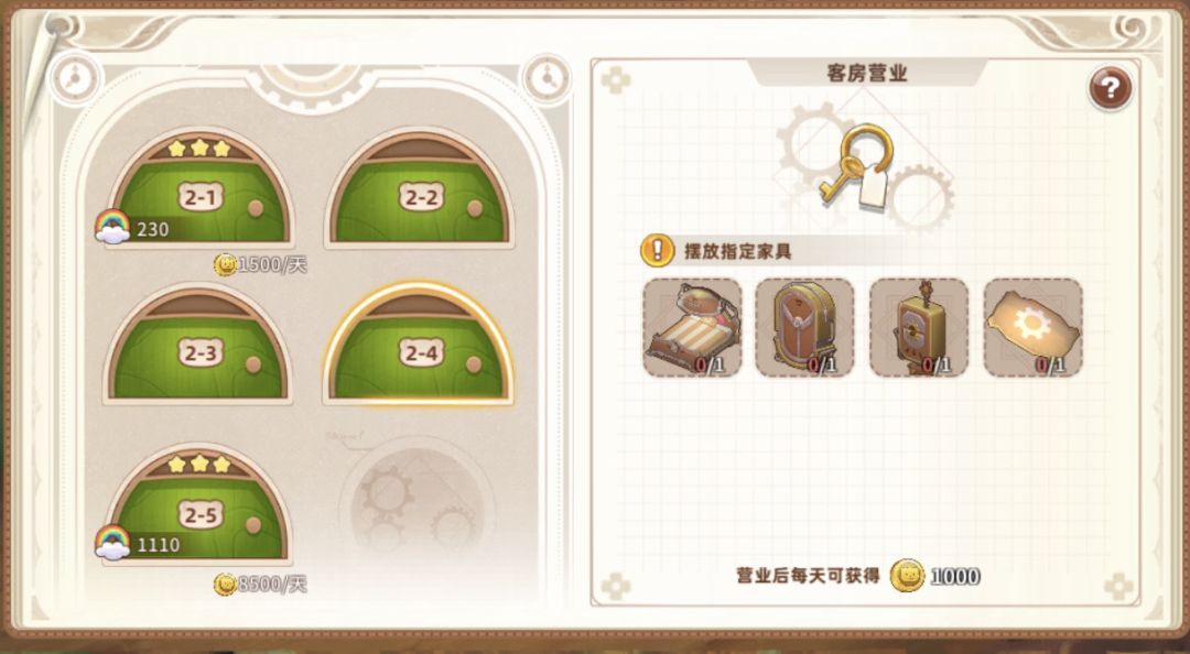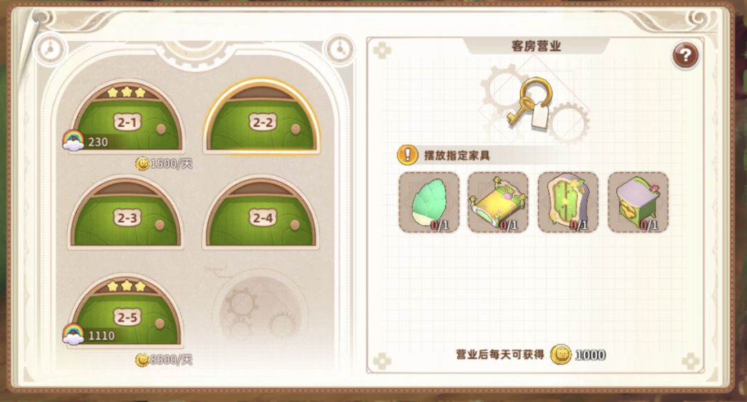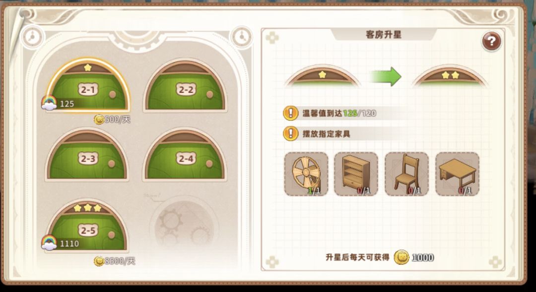 2星需要四个家具、温馨值120,收入1000