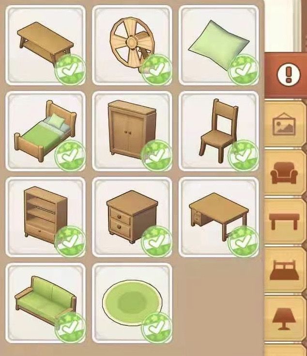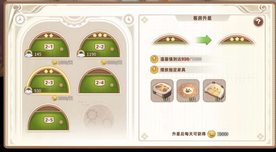 3星需要三个家具、温馨值1000,收入5000