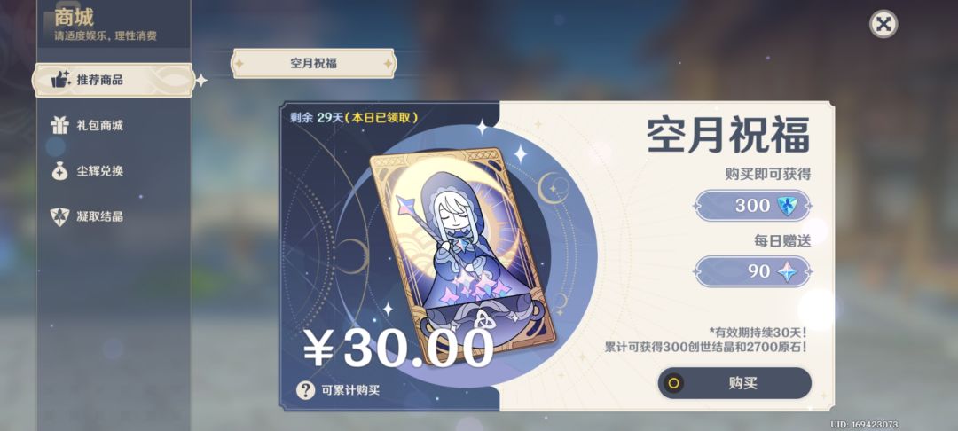 为了抽优菈,终究是剁手了,本来打算零氪混下去的