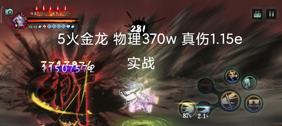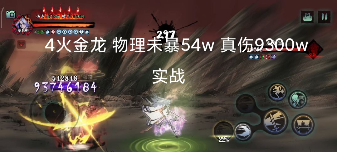 如图,同一刀打里武林2龙复园物理伤害比打桩少了90%,真伤无变化。图1和3看似是5火,但是前置只有两个技能,所以它是4火状态的伤害,截图的时候5火是金龙打中桩以后的状态。