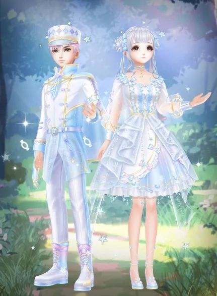 浅蓝与透白的梦幻碰撞,掉落的是冰晶还是糖果碎?糖果国王的帽子与飞扬的披风暗示着他的雄心抱负,糖果王后纯净典雅,看起来十分美好~