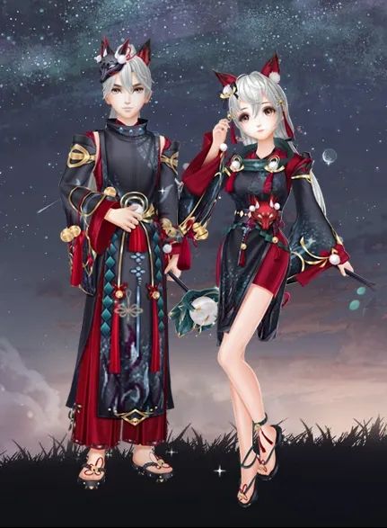 神社的小狐妖相伴长大, 气质沉稳却富有灵气~这套时装呈现出了这种矛盾的气质,典雅的花纹与妖异的设计,让本甜爱得不行~dancer可千万别错过哦!
