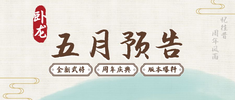《蜀汉传卧龙篇》五月活动预告——新武将、周年礼、版本爆料抢先看!