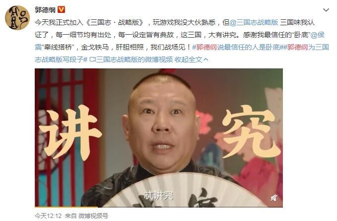 不玩游戏的郭德纲成为游戏代言人?《三国志·战略版》和老郭背后的故事