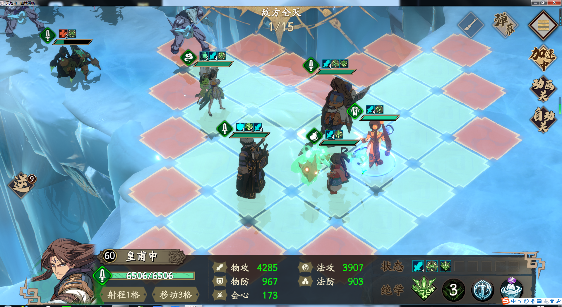其实没什么打法可说,大家这个时候了,也没必要越级什么的了,之前一路打各个等级上来也都懂怎么打。总之60级人物打就很轻松,反正我12回合就打完了,基本是碾压,冰创基本是保送的,主力都是系统送的角色。还是57级的时候打62雷创的时候刺激。