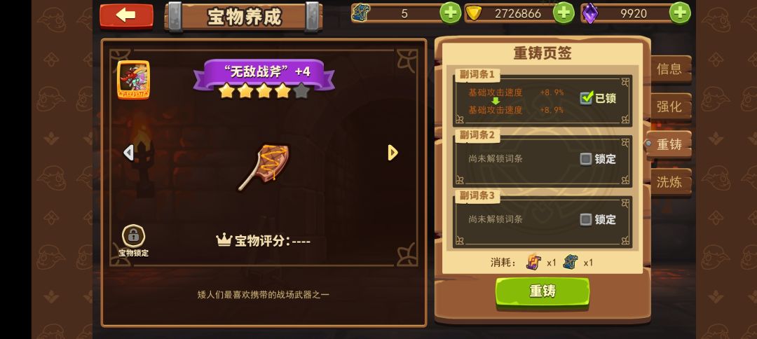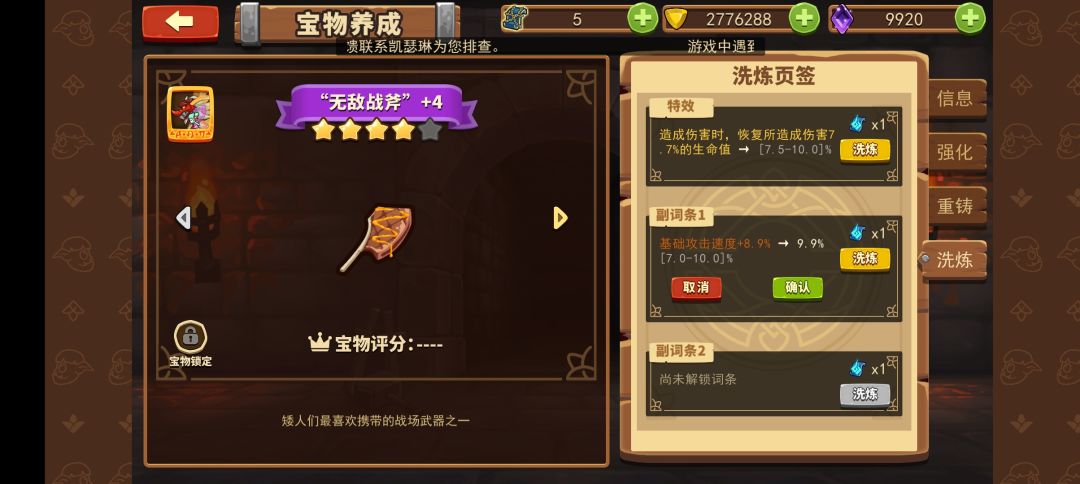 宝物有1个主词条和3个副词条,3个副词条都可以洗,直到洗出自己满意的属性。