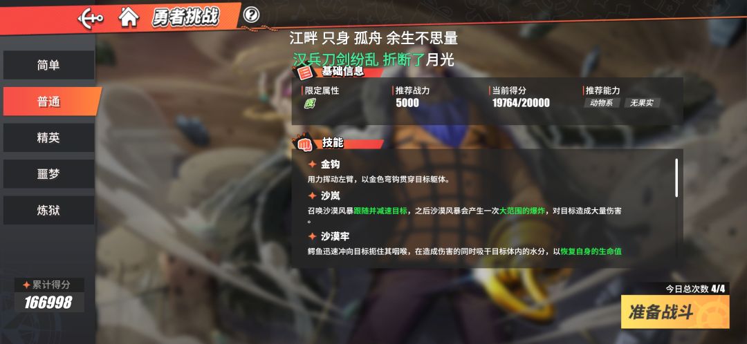 主力队分数尽量打满,比如我主力队是技简单普通就都打满,实在打不过就9结尾,一周每个人物有五次机会,就是每个难度消耗一次,所以一个难度不要用两次,最好在战力最高的时候,也就是周末打分最好,简单难度可以尝试,尝试不保存分数不扣次数,所以没事就尝试一下,每天都有四次机会,因为周末不可能打满所有关卡,在周三到周五把简单和普通尽量打满分。