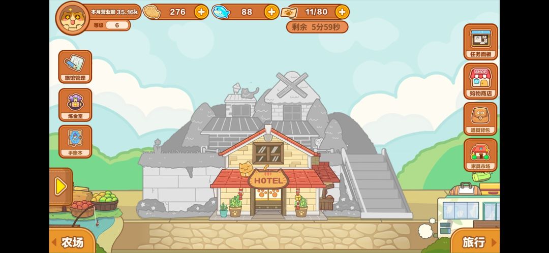 1. 旅馆六级后上面没有需求材料气泡,家具买满后也没有可升级提示。商城内下一级家具显示需要七级旅馆,可见六级不是最高级。