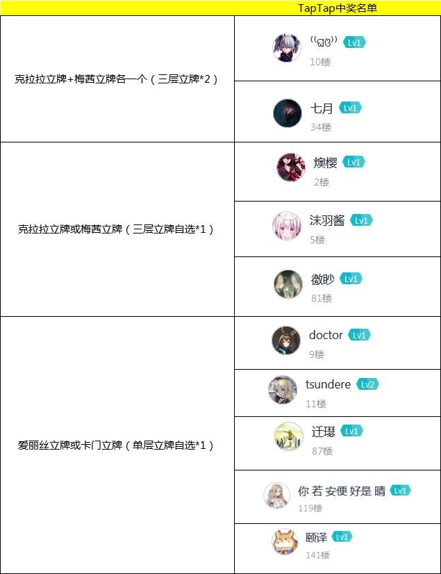 【中奖名单】