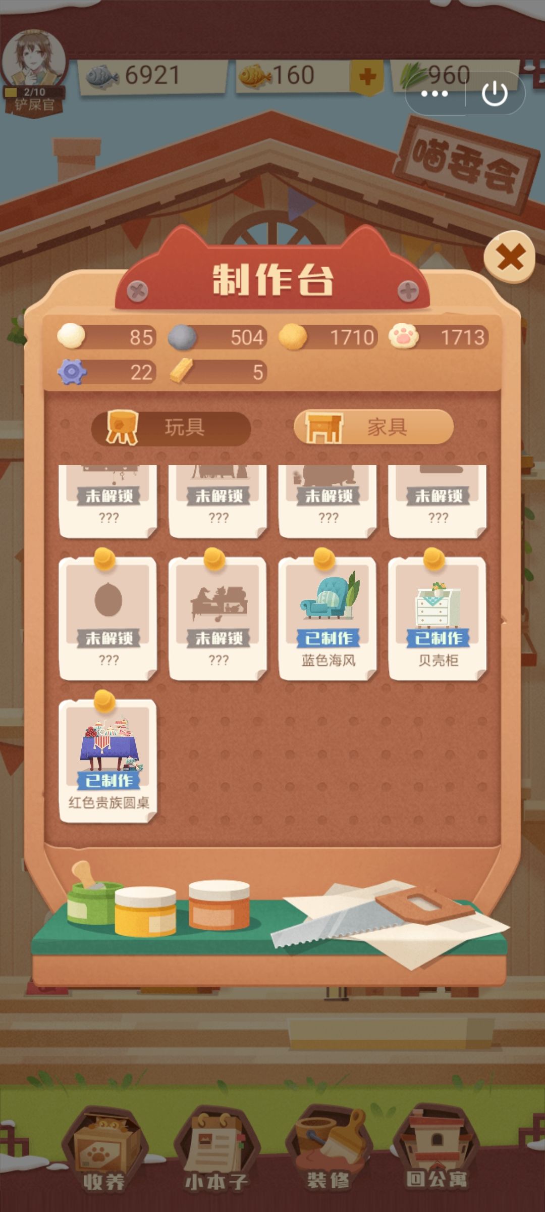 感觉我做红色贵族桌浪费了,加的好感度还没贝壳柜高