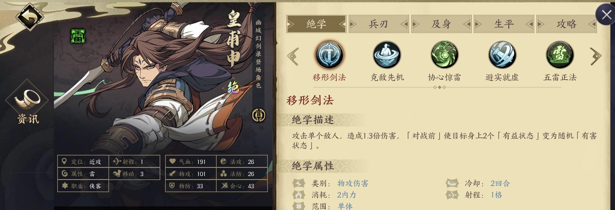 作为游戏唯一物法双修角色,因为走火入魔,最后废掉了一半的能力,但是凭借着一手号令群雄,也深受广大玩家的喜爱,这角色强是真的强,单论加攻击,谁能找出一个比这角色更强的?还能战前驱散buff,还能给队友加暴击,还有突进在动技能,居然还可以先攻,最后居然还可以减对手攻击,最后的最后,居然每回合还能成长,越战越强。然后还物理法系全都精通,练了他一个角色,辅助,物理C,法术C,你将全都拥有。大招更是物理法系两段伤害,另对手捉摸不透,防不胜防。
