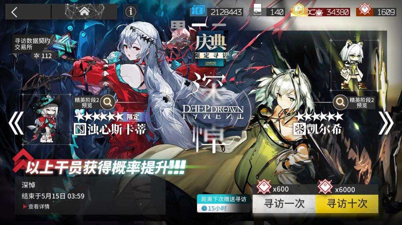 然后我又迅速砸了一个十连,第60发的时候又一次火光,出凯尔希了。